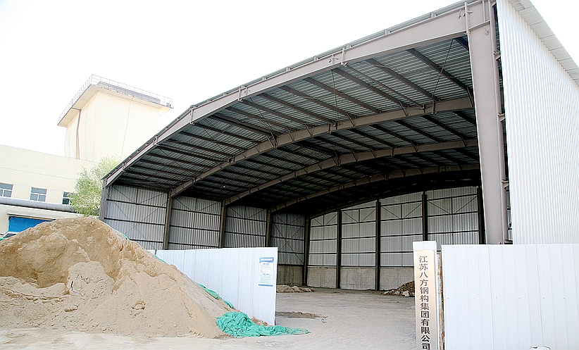 該大棚主要是存放黃沙石子等物料,改善物料堆放運輸造成的揚塵、外溢污染,擴建后儲存空間變大、變高,車輛進(jìn)出卸車更加方便、安全。