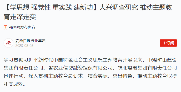 8月3日學(xué)習(xí)強(qiáng)國安徽頻道:皖北煤電大興調(diào)查研究推動(dòng)主題教育走深走實(shí)