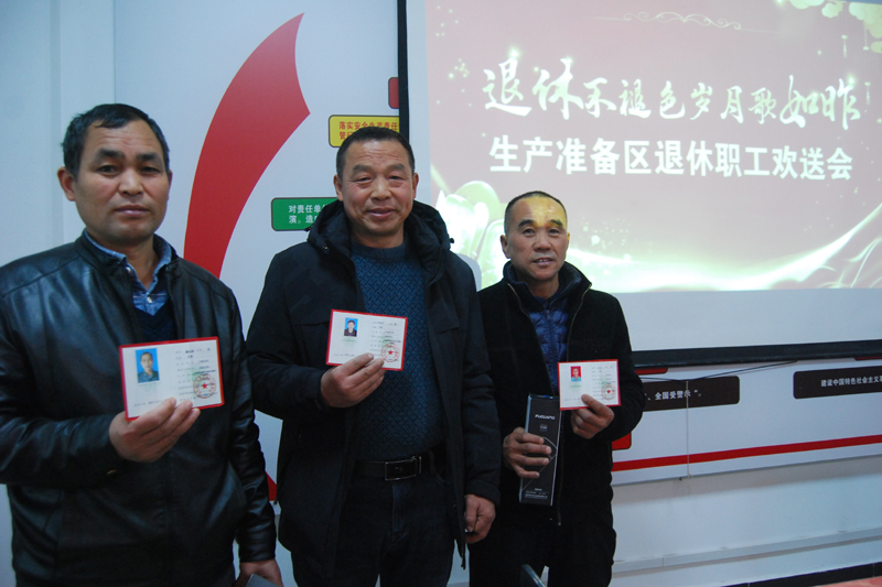 12月13日上午,恒源礦生產(chǎn)準(zhǔn)備區(qū)在會(huì)議室專門為李祥坤、劉紹春、韓金光等8位退休職工舉辦了簡(jiǎn)潔而溫馨的歡送儀式,并為他們送上了精心準(zhǔn)備的紀(jì)念品,將對(duì)退休職工的關(guān)心關(guān)懷落到實(shí)處。
