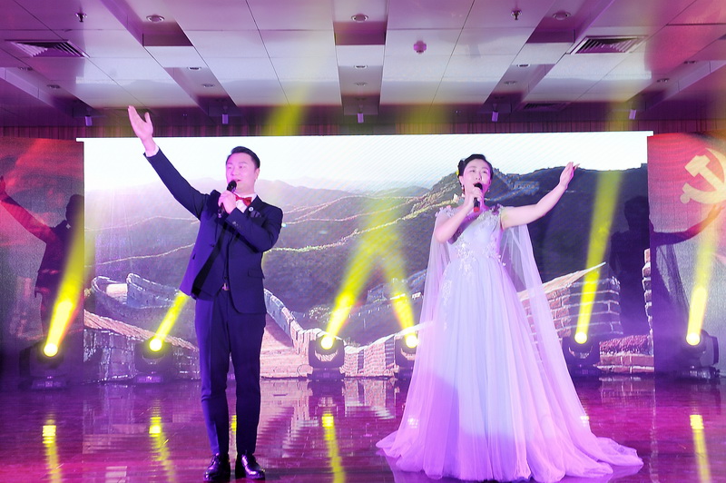 演出結(jié)束后,集團公司領(lǐng)導(dǎo)登上舞臺與全體演職人員合影留念。